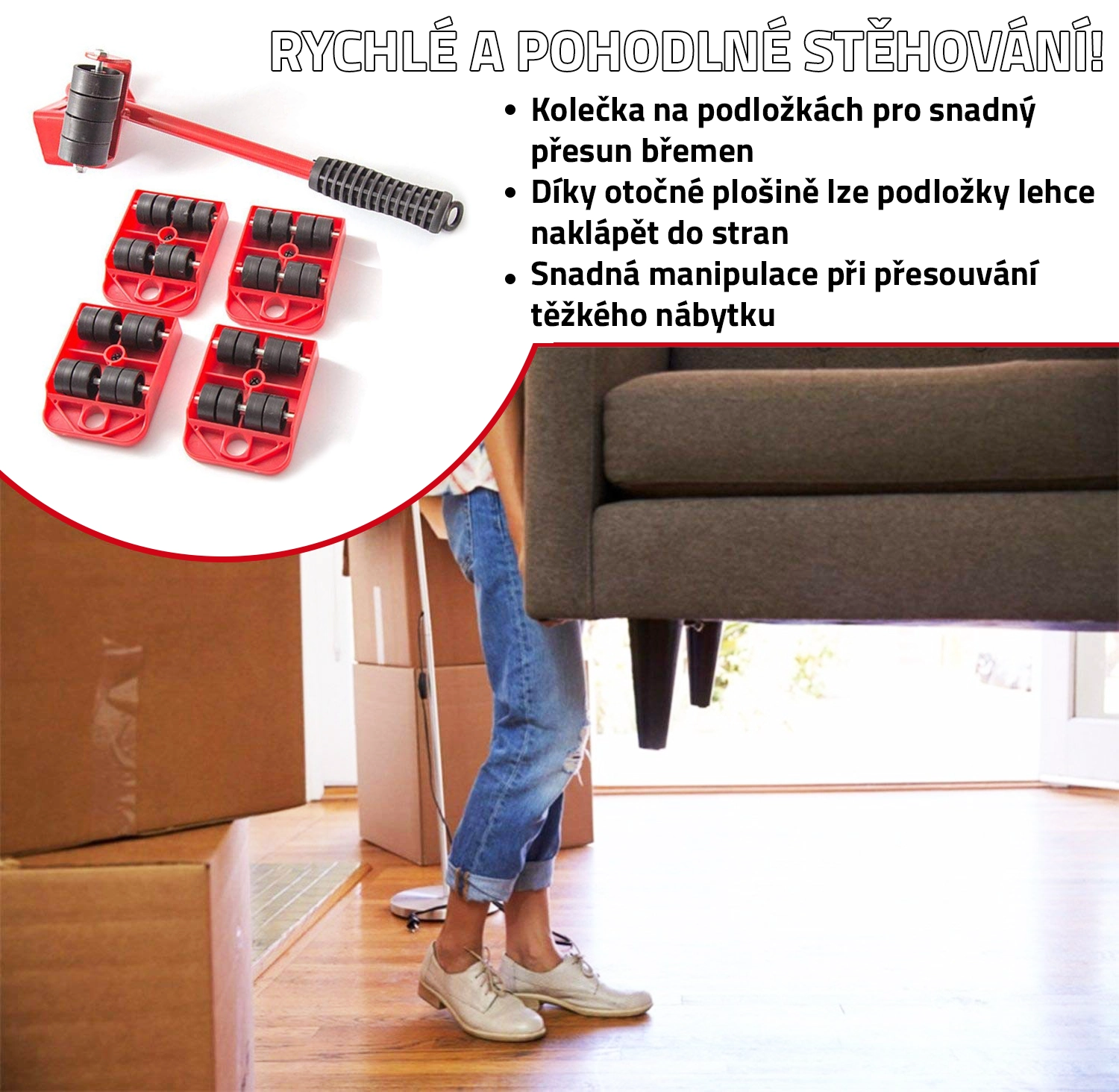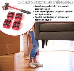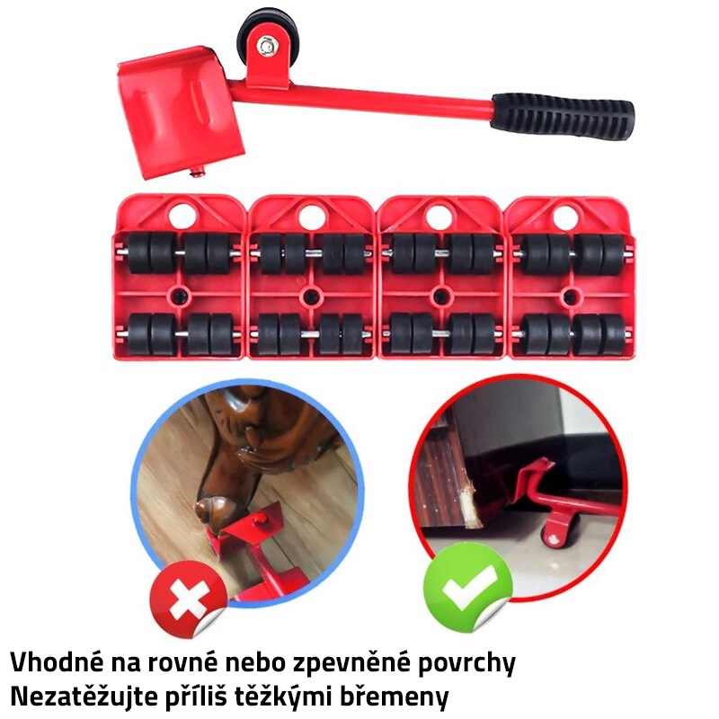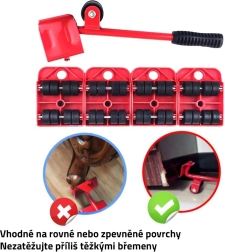 Praktiškas rinkinys lengvam sunkių baldų ir buitinės technikos perkėlimui iki 150 kg. Sudėtyje yra svirtinis keltuvas baldams pakelti ir keturi transportavimo ratai su neslystančia danga bei 360° pasukimu, kad skalbyklę, šaldytuvą ar komodą perkeltumėte greitai, saugiai ir be pastangų.