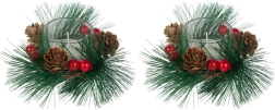Elegantiškos stiklinės žvakidės apsuptos dirbtiniais elementais, užtikrinančiais patvarumą ir ilgalaikį grožį. Tinka bet kokiam interjerui dėl klasikinės išvaizdos, puikiai derančios žiemos sezonui.