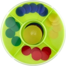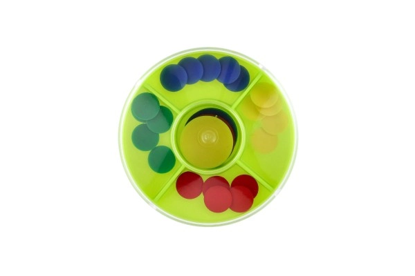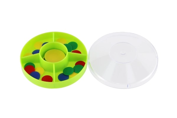 Žaidimas padeda vaikams lavinti smulkiąją motoriką manipuliuojant mažais diskais.