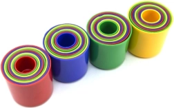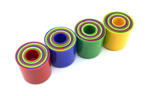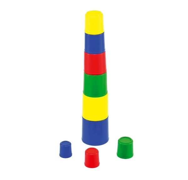 Kiekvienas puodelis skiriasi spalva ir dydžiu. Statydami bokštą ar dėdami vieną į kitą, vaikai mokosi skirti spalvas, rikiuoti pagal dydį ir suprasti seką.