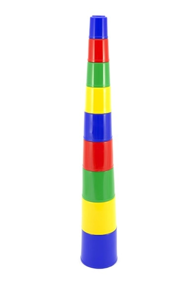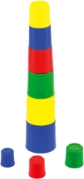 Linksmas edukacinis žaislas patiems mažiausiems: spalvinga stumdoma piramidė iš puodelių padeda lavinti smulkiąją motoriką, akių–rankų koordinaciją ir pažinti spalvas bei dydžius. Iš tvirto plastiko pagamintus puodelius galima statyti vieną ant kito arba sudėti vieną į kitą.