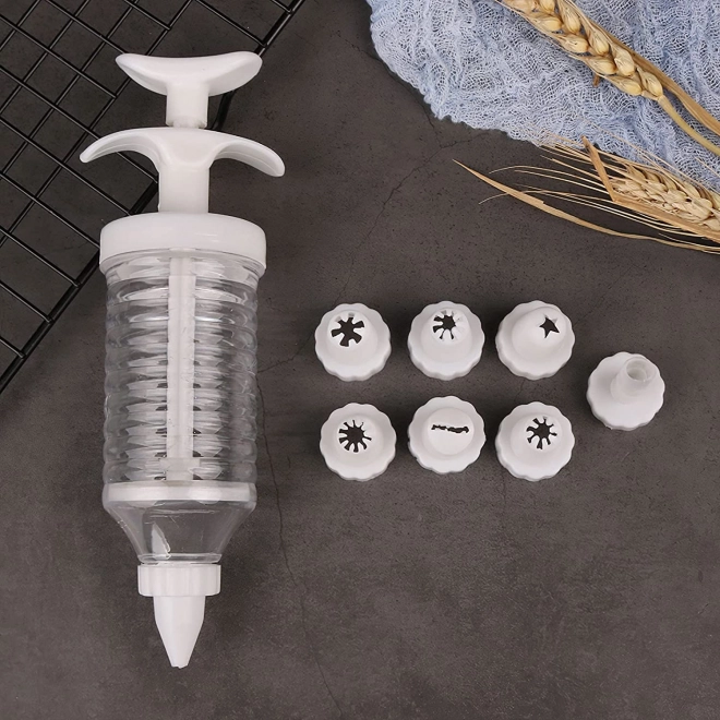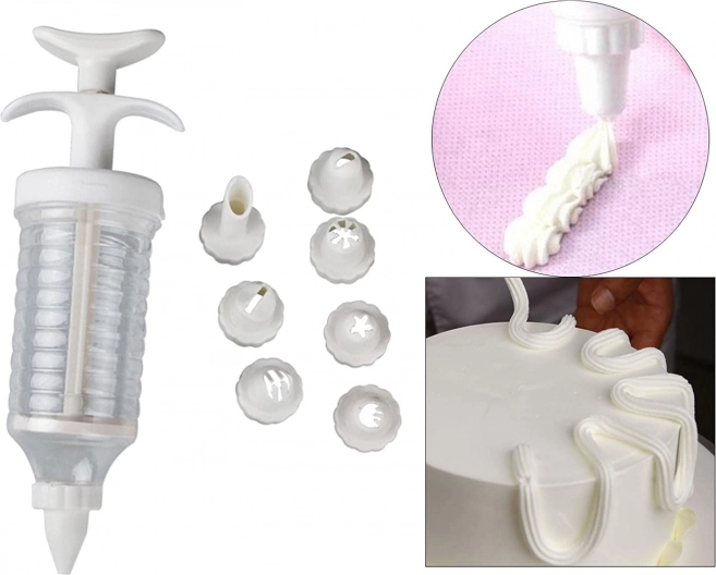 Galutinis efektas yra fantastiškas. Su šiuo dekoravimo švirkštu iš paprastų tortų ir desertų akimirksniu sukursite gražiai paruoštus ir glotniai užbaigtus skanėstus. Šis įrankis tinka tiek profesionaliam konditeriui, tiek mėgėjui. Pakuotėje yra 8 antgaliai, kuriuos galima naudoti įvairiems dekoravimo stiliams. Veikia injekcinio švirkšto principu, todėl nebus jokios netvarkos. Su šiuo švirkštu dekoruoti bus itin paprasta.
