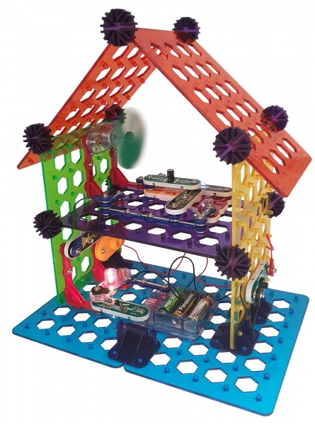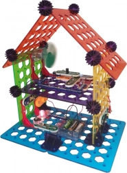 Rinkinys BOFFIN II Mano namas idealiai tinka vaikams nuo 8 metų, norintiems suprasti elektros ir išmanaus namo principus. Pagrindą sudaro skylėta plokštė, ant kurios dalys lengvai užspaudžiamos – be litavimo, saugiai ir su momentiniu rezultatu. Pastatysite apšvietimą, signalizaciją, dviaukštį namą, vėjo malūną ir „party“ namą, o veikimą patikrinsite pagal pateiktas schemas.