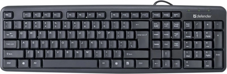 Biuro klaviatūra Defender Element elegantiškos juodos spalvos siūlo pilno dydžio išdėstymą, sutvirtintą patvarią konstrukciją ir reguliuojamą posvyrį patogiam rašymui; dėl plug & play veikia be tvarkyklių, o plonas korpusas taupo vietą ant stalo.