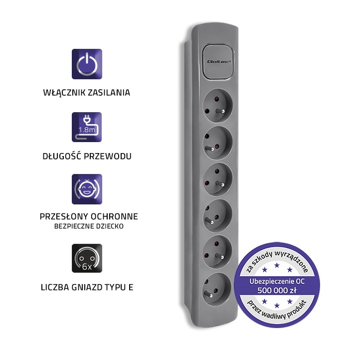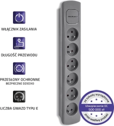 Raskite vietos visiems savo įrenginiams su šia pilka paskirstymo juosta, kuri siūlo šešis lizdus ir 1,8 metro ilgio kabelį. Tinka naudoti namuose ir biuruose, kur reikia efektyviai organizuoti kabelius.