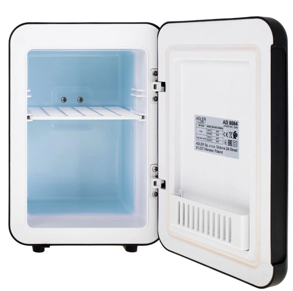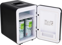 4 litrų talpos vidus su lentynėle ir krepšeliu durelėse leidžia patogiai susiorganizuoti mažus butelius, skardines ir indelius. Tvirta rankena ir kompaktiški matmenys užtikrina lengvą nešiojimą, o 230 V/12 V maitinimas leidžia naudoti šaldytuvą namuose ir automobilyje. Rinkinyje yra abu maitinimo kabeliai, o galinėje dalyje įrengtas HOT/COLD jungiklis.
