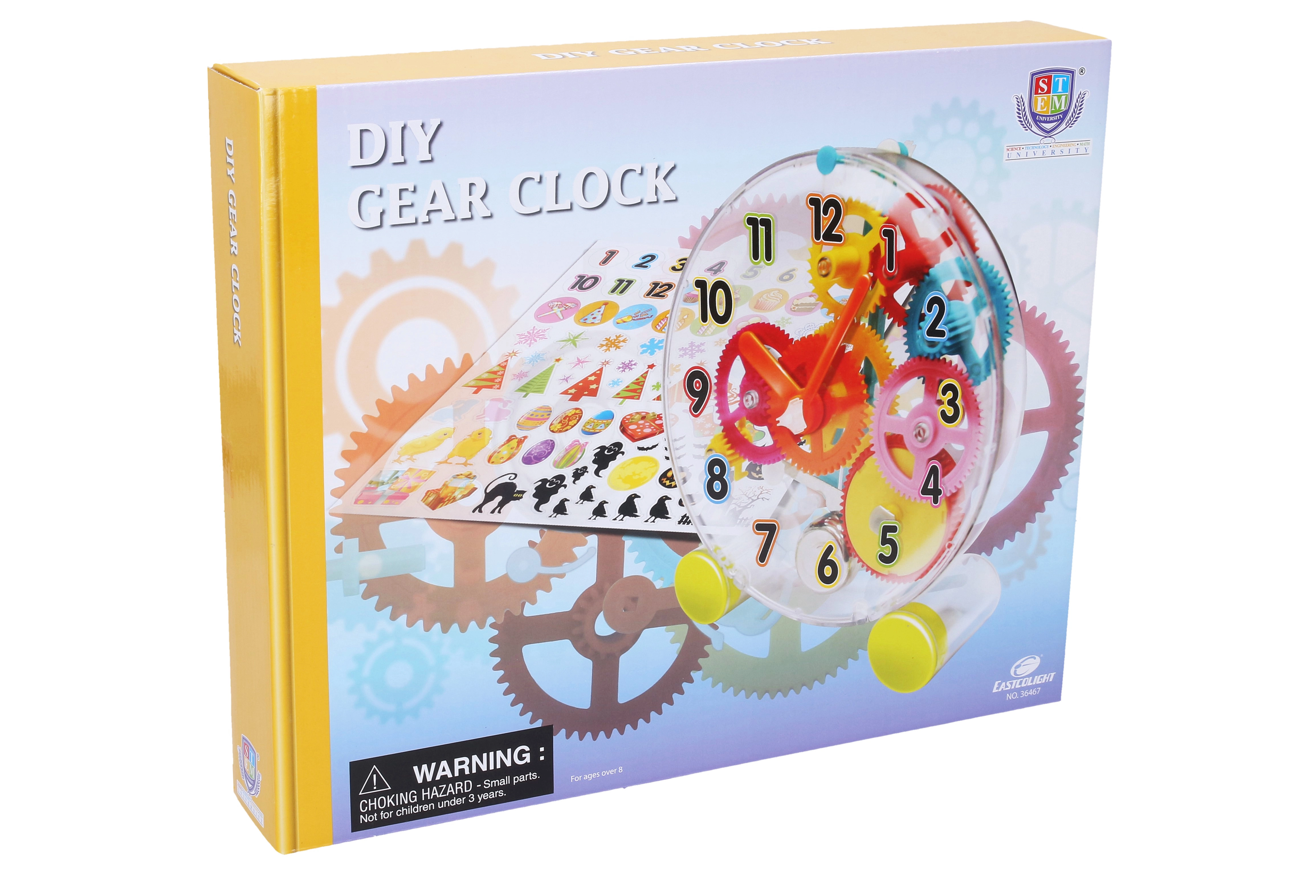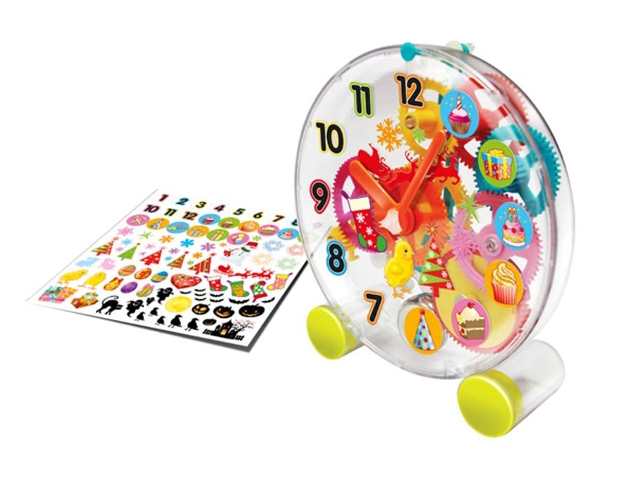 Surinkti laikrodžiai veikia mechaninio mechanizmo pagrindu – tai ir edukaciška, ir smagu. Pakuotėje taip pat yra dekoratyvinių lipdukų, kurių dėka dizainą pritaikysite pagal savo skonį.