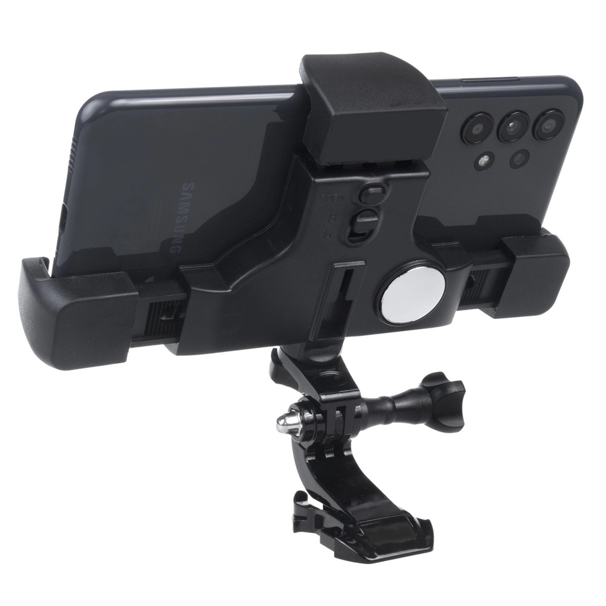 Centruotas tvirtinimas ir suderinamumas su veiksmo kameromis bei mobiliaisiais leidžia universaliai naudoti sportuojant ir keliaujant.