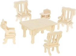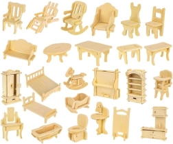 Šiame rinkinyje yra 34 medinių baldų dalys, kurias galite surinkti patys ir sukurti idealų lėlių interjerą. Baldai suprojektuoti tokiu masteliu, kuris tinka įvairiems lėlių nameliams, o dirbant su medžiu vaikai gali ugdyti kūrybiškumą ir kurti unikalius spalvų derinius pagal savo skonį.