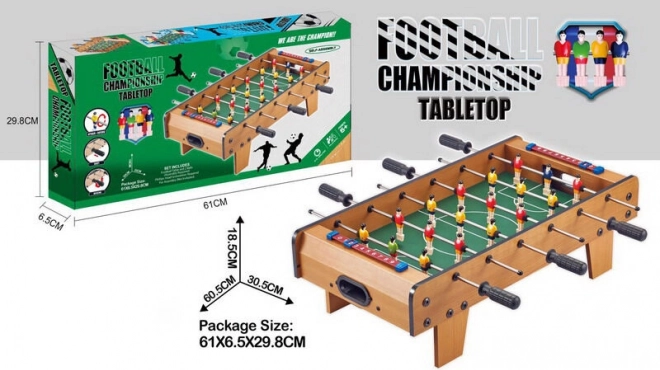 Kompaktiškas medinis stalo futbolas suteikia valandas pramogų vaikams ir suaugusiesiems. Dėl mažų matmenų tinka kiekvienam butui, biurui ar kelionėms, yra lengvai sandėliuojamas ir bet kada paruoštas žaidimui.