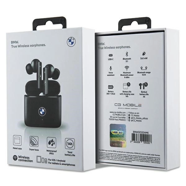 - BMW premium dizainas – logotipas ant ausinių ir dėklo, kompaktiški kišeniniai matmenys.