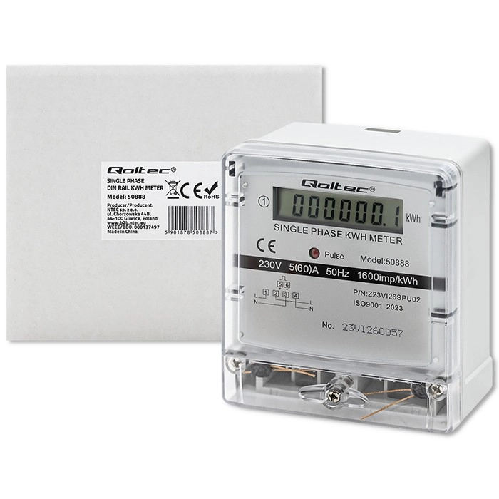 Šis vienfazis Qoltec skaitiklis idealiai tinka energijos sąnaudų stebėjimui namuose ir komercinėse patalpose. Dėl kompaktiško dizaino ir tikslaus matavimo jis užtikrina paprastą montavimą ir naudojimą. LCD ekranas aiškiai rodo energijos suvartojimą kilovatvalandėmis (kWh).