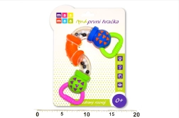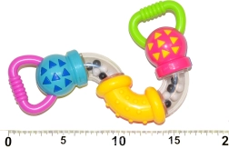 Spalvingas barškutis patiems mažiausiems skatina pojūčių ir smulkiosios motorikos vystymąsi. Dėl besisukančių vamzdelių ir barškančių kamuoliukų skleidžia malonius garsus, turi patogias rankenėles lengvam laikymui ir dydį, idealų vaiko delneliui.