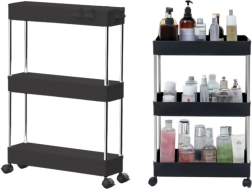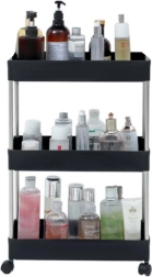 Praktiška mobilioji lentyna su 3 lentynomis elegantiškos juodos spalvos patogiai virtuvės, vonios kambario ir svetainės organizacijai. Dėl kompaktiškų matmenų, mobilios konstrukcijos su ratukais ir stabilios metalinės bei patvaraus plastiko konstrukcijos ji užtikrina tvarkingą prieskonių, kosmetikos, knygų ir dekoracijų laikymą.