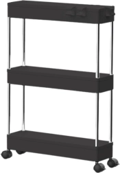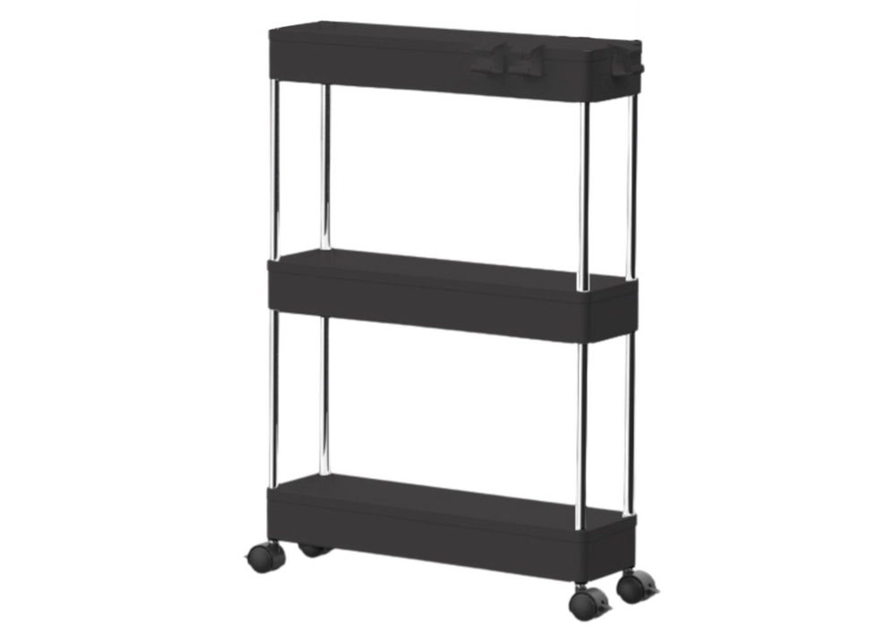 Universalus mobilusis stelažas su trimis erdviomis lentynomis idealiai tinka vietai taupyti ir greitai pertvarkyti namus. Ratukai su stabdžiu užtikrina lengvą perstūmimą ir stabilumą vietoje, o elegantiška juoda apdaila puikiai dera tiek moderniuose, tiek industriniuose interjeruose.