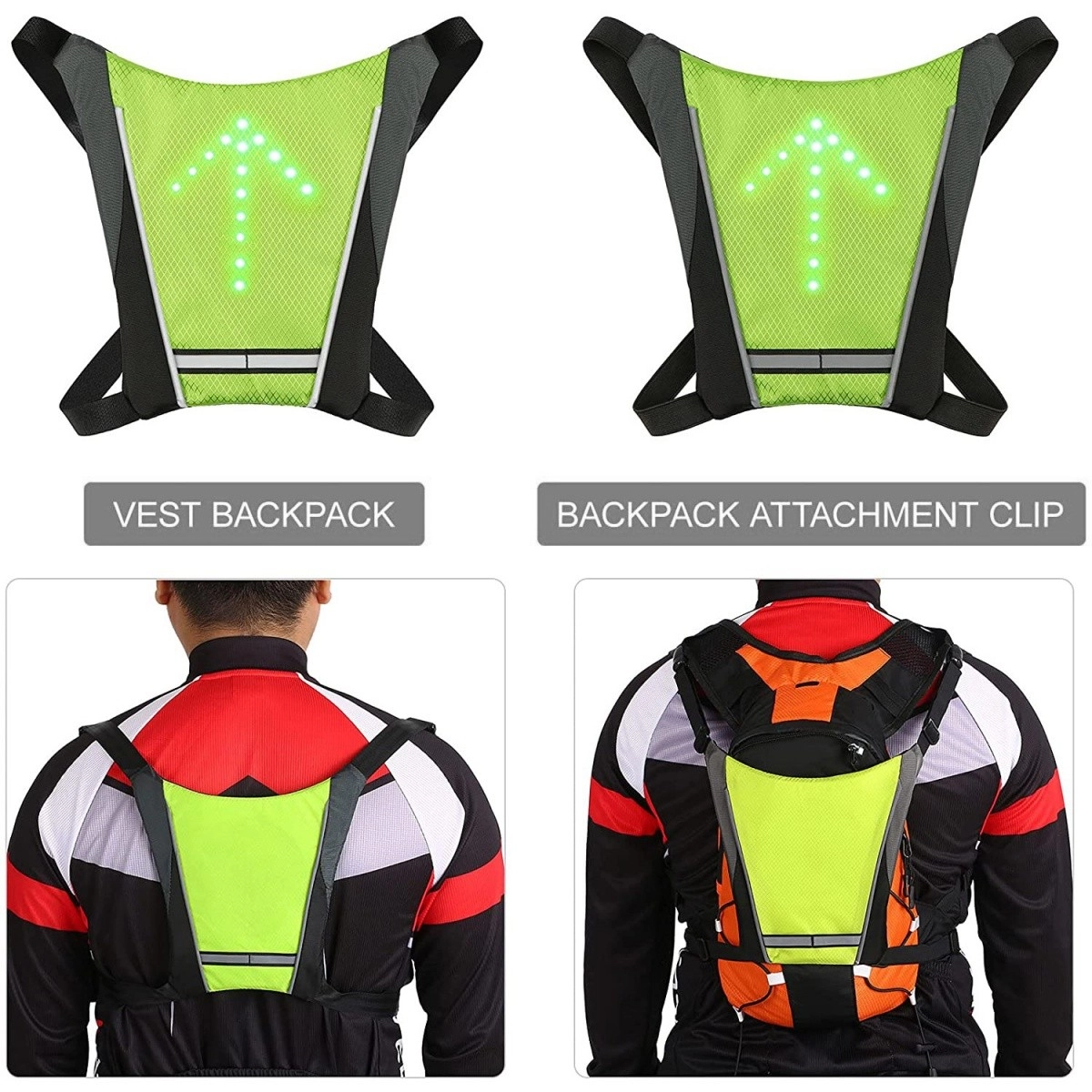 Ši atšvaitinė LED liemenė didina saugumą judant keliu ar už jo ribų. Ryškūs LED piktogramų signalai rodo važiavimo kryptį (pirmyn, kairėn, dešinėn) ir stabdymo signalą, todėl kiti eismo dalyviai jus geriau mato tiek dieną, tiek naktį. Dėl galimybės tvirtinti ant nugaros arba prie kuprinės ją naudosite važiuodami dviračiu, keliaudami pėsčiomis ir užsiimdami kitomis veiklomis lauke.