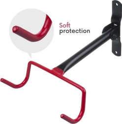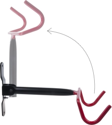Nukabinus dviratį laikiklį galima lengvai nulenkti, kad neišsikištų į erdvę. Dviguba kablių apsauginė danga sumažina dažų pažeidimų riziką ir užtikrina stabilų, švelnų laikymą. Puikus sprendimas mažoms namų erdvėms, dirbtuvėms ir garažams.