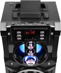 Dėl karaokės funkcijos kiekviena akimirka taps mažu koncertu – tereikia prijungti mikrofoną ir dainuoti. Garsiakalbis įkraunamas per USB‑C (laidas komplekte), o jo Li‑Ion baterija veikia iki 7 valandų. Elegantiška MDF korpuso konstrukcija gerina akustiką ir suteikia įrenginiui solidžią išvaizdą.