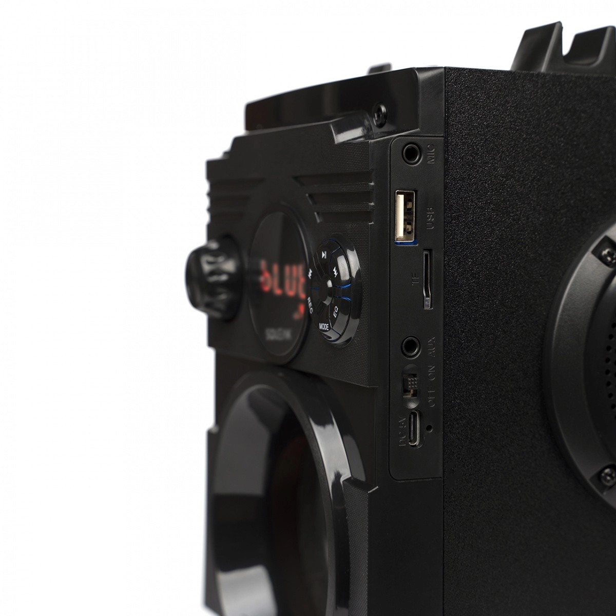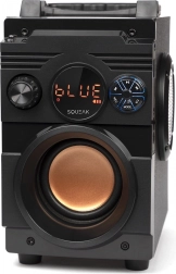 Nešiojamasis Bluetooth garsiakalbis BassBlaster SQ1001, kurio galia 18 W, suteikia galingą bosą, Bluetooth 5.1 + EDR stabiliai jungčiai, FM radiją su automatiniu derinimu ir modernų USB‑C įkrovimą. Dėl iki 7 val. veikiančios baterijos, EQ režimų ir patvarios MDF korpuso konstrukcijos jis idealus terasai, piknikui ir paplūdimiui.