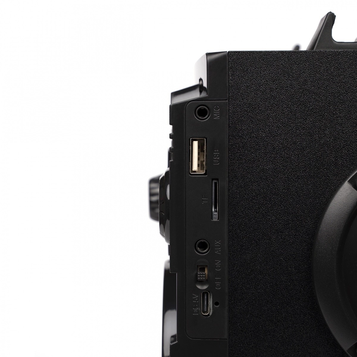 - Bluetooth belaidžiu būdu; kiti prievadai pagal komplektaciją (pvz., USB, AUX, TF/MicroSD, MIC)