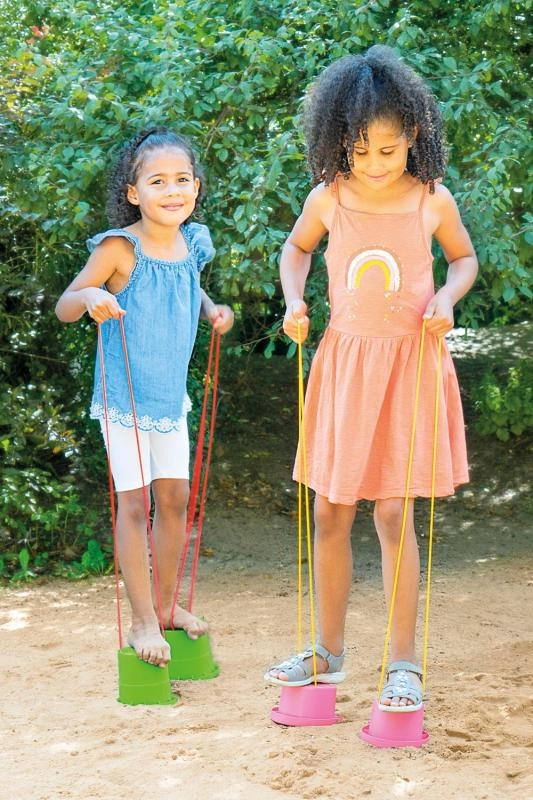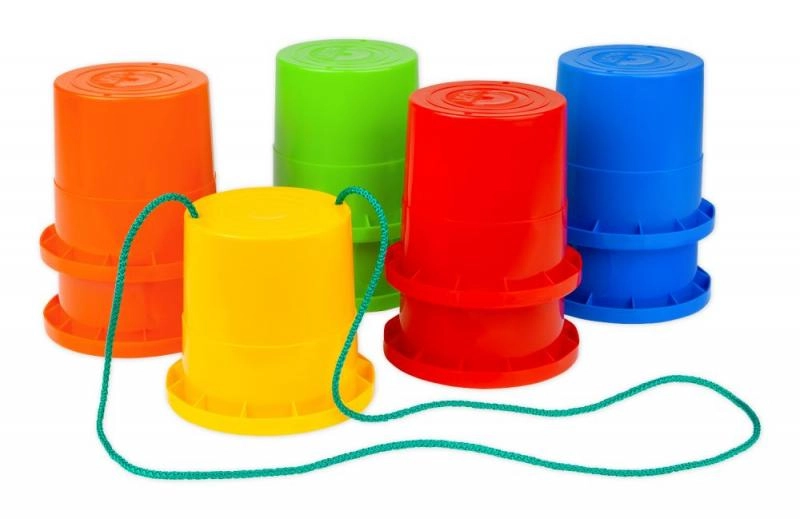 Šis spalvingų plastikinių kojūkų rinkinys – puikus pasirinkimas aktyviam vaikų laisvalaikiui. Stabili „puodelių“ tipo bazė ir tvirtos virvutės padeda vaikams saugiai treniruoti pusiausvyrą ir pasitikėjimą judesiu. Kojūkai yra lengvi, patvarūs ir lengvai pernešami – supakuoti į praktišką tinklelį.