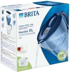 BRITA Marella XL ąsotis siūlo 3,5 l bendros talpos ir iki 2,0 l perfiltruoto vandens vienu užpildymu. Dėl atverčiamo dangtelio jį lengvai pripildysite viena ranka, indą galima plauti indaplovėje (išskyrus elektroninį dangtelį), o dėl matmenų jis telpa į šaldytuvo dureles. Elektroninis BRITA Memo indikatorius primena keisti filtrą kas 4 savaites.