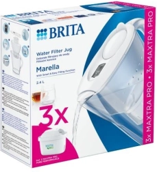 BRITA Marella ąsotis, kurio talpa 2,4 l, vienu pripildymu pateikia apie 1,4 l perfiltruoto vandens. Dėl siauro korpuso telpa į šaldytuvo durelių lentyną, dangtelis su atverčiama sklende leidžia pildyti viena ranka, o BRITA Memo indikatorius primena kasetę keisti kas 4 savaites. Daugumą dalių galima plauti indaplovėje (išskyrus dangtelį su elektronika).