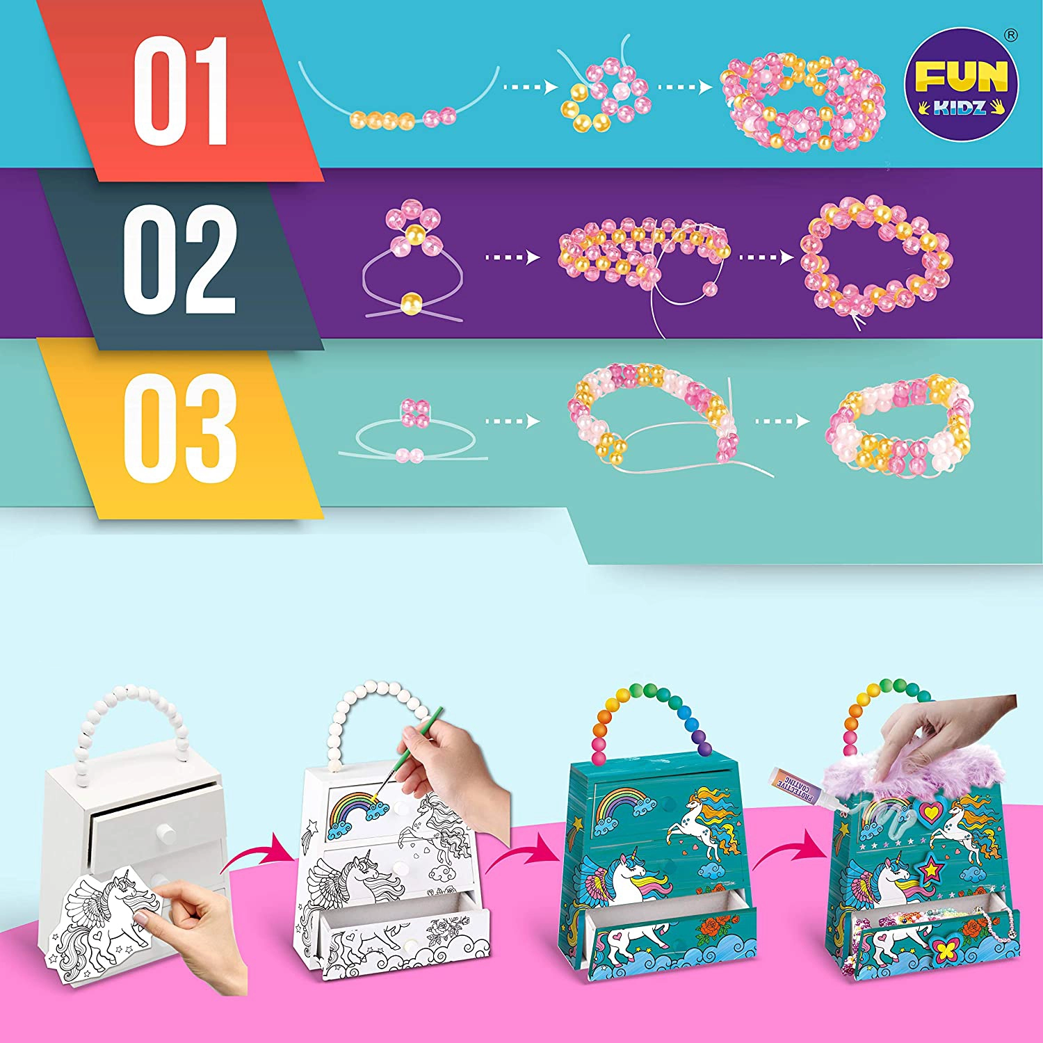 - Rinkinyje yra medinė papuošalų dėžutė, teptukas, 6 dažai, virvelė, klijai ir plati dekoracijų įvairovė.