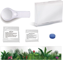 Pakuotėje rasite viską, ko reikia jūsų nuotykiui pradėti: akvariumą, maistingą gelį, didinamąjį stiklą, augalų lipduką ir instrukciją. Rekomenduojama vaikams nuo 8 metų.