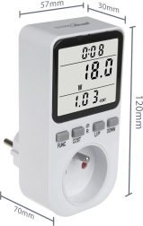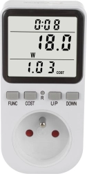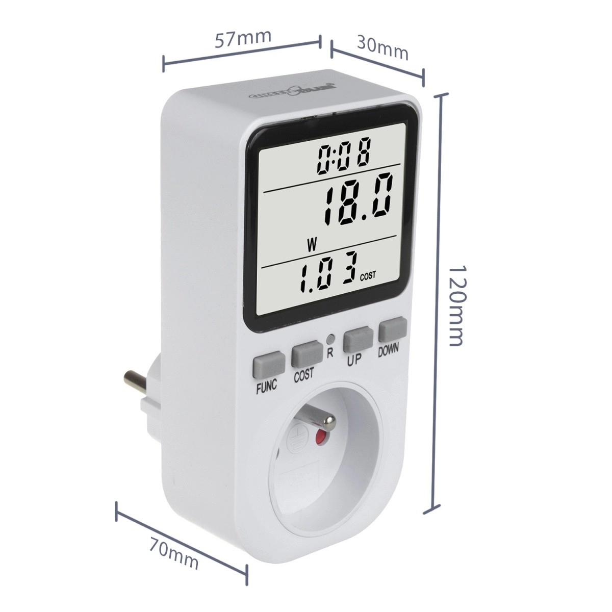 Šis matuoklis turi keturis didelius mygtukus patogiam valdymui ir perkrovos signalą, kuris įspėja, kai apkrova viršija saugų 3680 W limitą. Ryškus ekranas leidžia lengvai skaityti tokius duomenis kaip suvartotos energijos kiekis ir jos kaina, todėl efektyviai stebėsite ir valdysite savo elektros išlaidas.