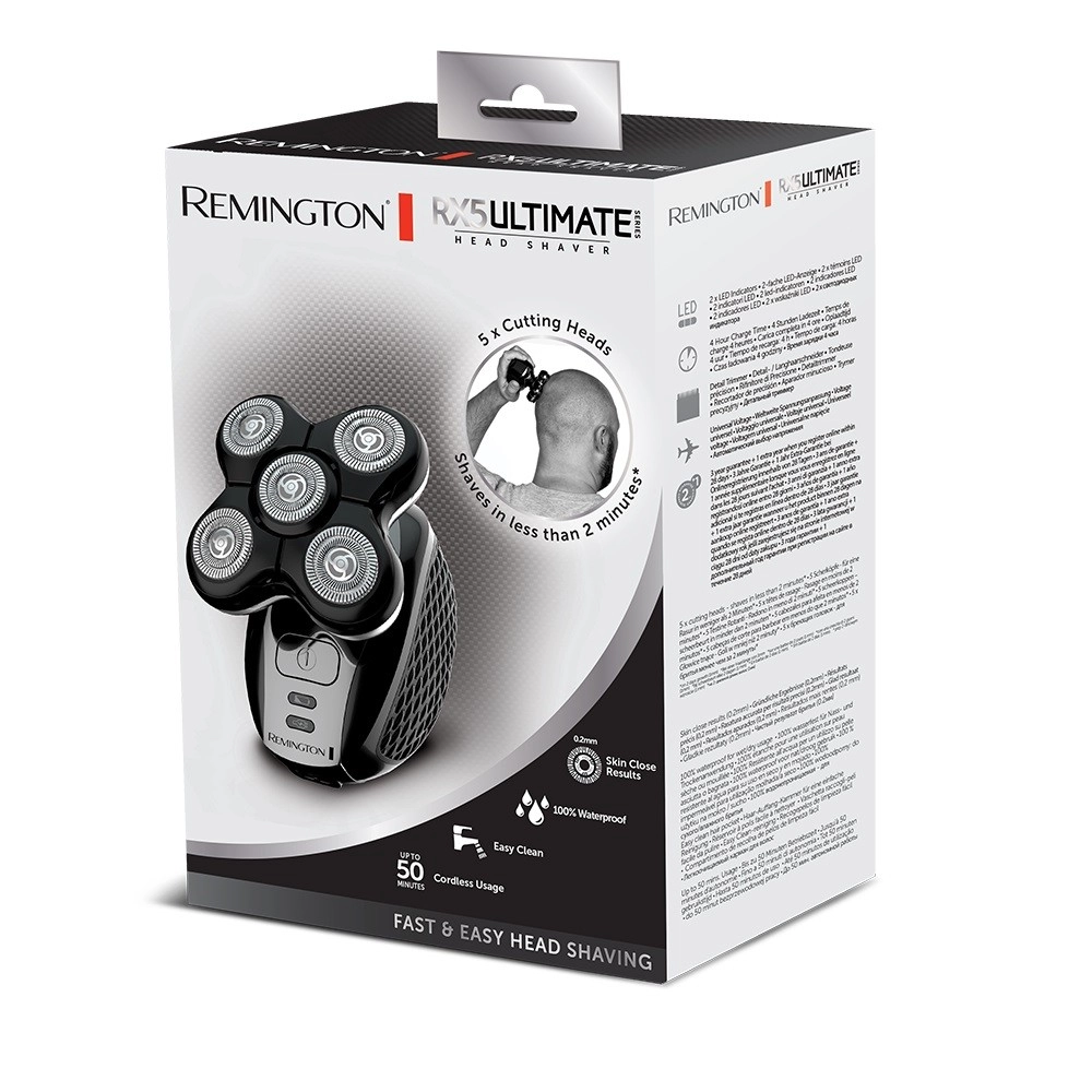 Remington XR1500 RX5 Ultimate Series sukurtas vyrams, vertinantiems tobulą glotnumą, pasiekiamą penkiomis lanksčiomis galvutėmis. Skustuvą paprasta naudoti dėl ergonomiško dizaino, kuris užtikrina patogų laikymą rankoje. Jis 100 % atsparus vandeniui, todėl tinka sausam ir šlapiam skutimui su geliais ar putomis. Integruota baterija po pilno įkrovimo, trunkančio maždaug 4 valandas, suteikia iki 50 minučių belaidžio darbo. Skustuvo valymas lengvas – jį galima nuplauti po tekančiu vandeniu.