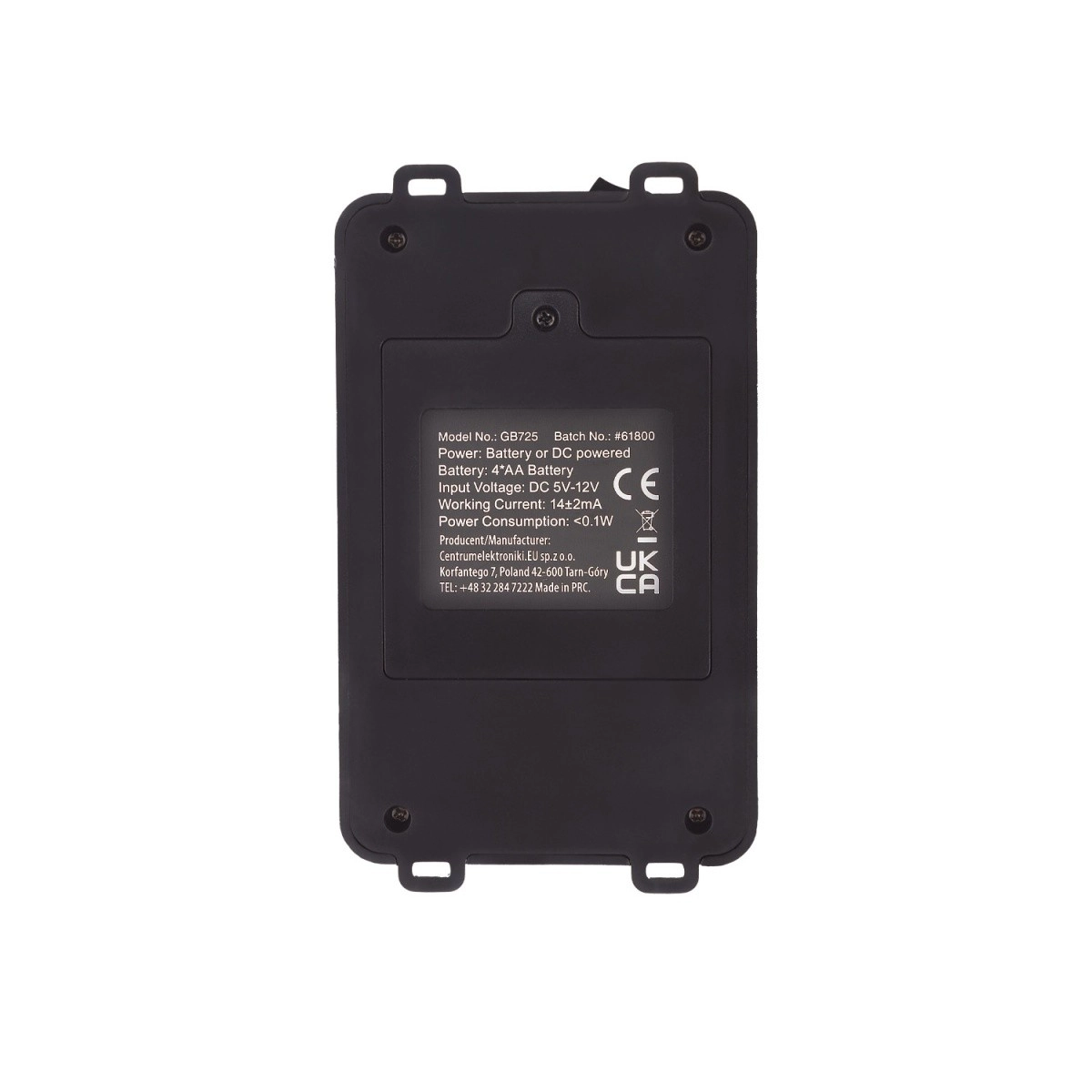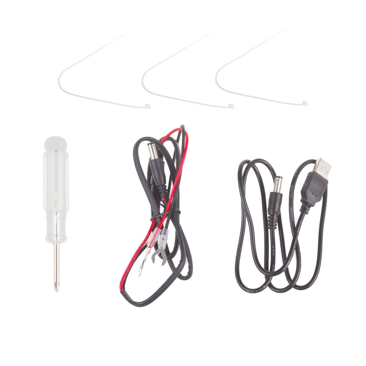 Įrenginys gali būti maitinamas iš automobilio akumuliatoriaus, keturių AA baterijų arba per USB kabelį.