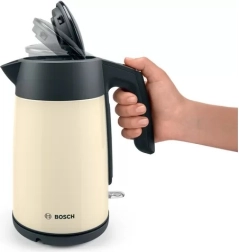 Patirkite patogumą su šiuo Bosch elektriniu virduliu, kuris dėl vandens lygio indikatoriaus leidžia užvirti tik tiek vandens, kiek reikia. Ergonomiška forma užtikrina patogų pylimą be išsiliejimo – tai įvertinsite kasdien naudodami.