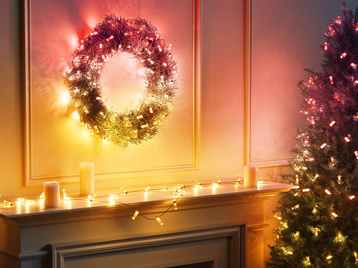 Mėgaukitės stulbinančiais dekoratyviniais efektais namuose – šviečiantis vainikas ir eglutė su švieselių girliandomis sukurs jaukią šventinę nuotaiką.