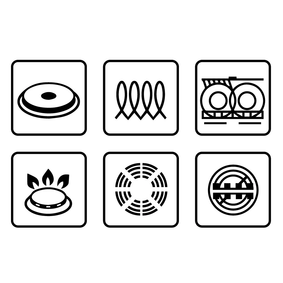 Suderinama su dujinėmis, elektrinėmis, stiklo keraminėmis ir indukcinėmis viryklėmis. Taip pat tinkama naudoti orkaitėje iki 260 °C patiekalų užbaigimui.