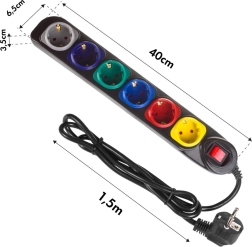 Praktiška MACLEAN prailginimo juosta su šešiais lizdais ir 1,5 m kabeliu – puikus pasirinkimas namams, biurui ir dirbtuvėms. Spalvomis atskirti lizdai palengvina prijungtų įrenginių atpažinimą, apšviestas pagrindinis jungiklis leidžia greitai atjungti maitinimą, o vaikiškos apsaugos padidina saugumą. Skirta 250 VAC / 10 A, apsaugos klasė IP20.