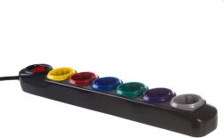 Kiekvienas iš šešių lizdų turi skirtingą spalvą, kad būtų lengva atpažinti prijungtus įrenginius – tvarka laiduose net ir visiškai juos užpildžius.