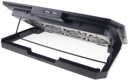 Išlaikykite nešiojamąjį kompiuterį saugioje temperatūroje ir dirbkite patogiau su šiuo universaliu aušinimo padeliu įrenginiams iki 17". Jis siūlo du tyliai veikiančius 140 mm ventiliatorius su mėlynu LED apšvietimu, net 8 aukščio reguliavimo padėtis ergonomikai, praktišką neslystančią atramą ir 2 prievadų USB šakotuvą patogiam priedų prijungimui.
