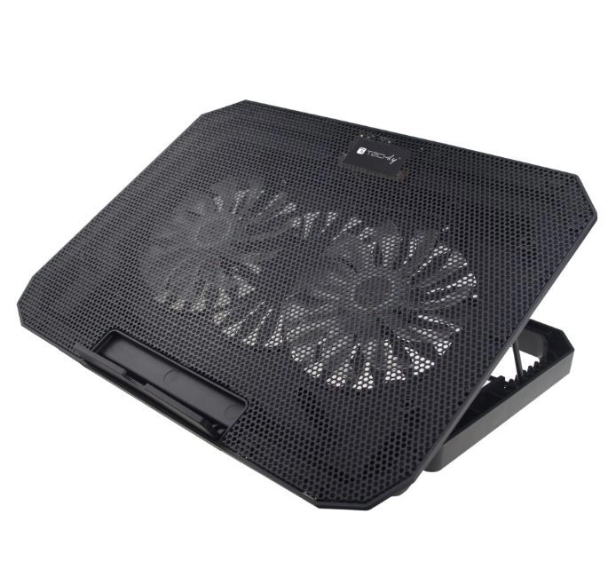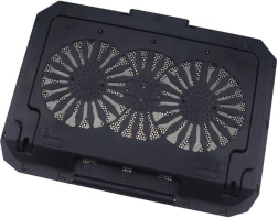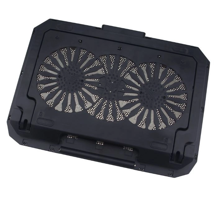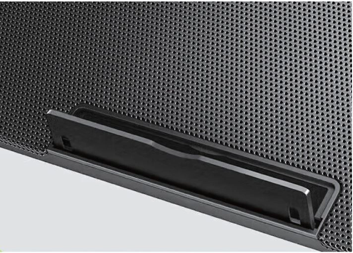 Aušinimo padelis sukurtas nešiojamiesiems kompiuteriams iki 17" ir derina veiksmingą aušinimą su darbo komfortu. Du dideli 140 mm ventiliatoriai, kurių greitis iki 1300 aps./min., užtikrina tolygų oro srautą per metalinį tinklelį, o ryškus LED apšvietimas suteikia stiliaus jūsų darbo vietai.