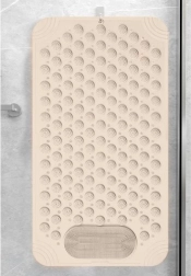 Saugiau vonioje akimirksniu: neslystanti RUHHY danga su siurbtukais užtikrina stabilumą vonioje ir duše, o pakeltos iškyšos suteikia malonų pėdų masažą. Drenažo angos greitai nuveda vandenį, danga greičiau džiūsta ir padeda išlaikyti higieną be pelėsio. Lengvai plaunama, o patogi pakabinimo anga spartina džiovinimą ir taupo vietą.