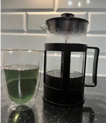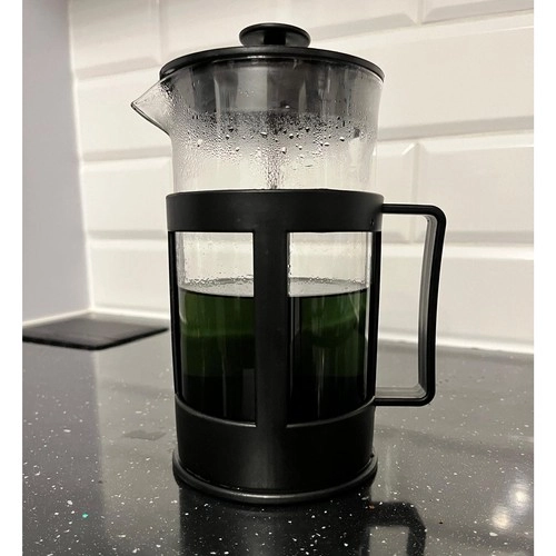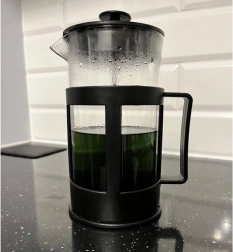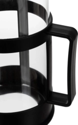 Patvari rankena nekaista, o permatomas stiklas leidžia lengvai kontroliuoti užpilo stiprumą ruošiant gėrimą.