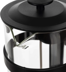Stiklinis RUHHY prancūziškas kavinukas apjungia paprastą paruošimą ir sodrų gėrimo skonį. Permatomas indas leidžia kontroliuoti plikymo intensyvumą, o nerūdijančio plieno stūmoklio sietelis veiksmingai atskiria tirščius ir arbatos lapelius, kad gautumėte tobulai švarų antpilą. 1 litro talpa idealiai tinka 3–6 porcijoms, todėl pravers šeimai ir susitikimuose su draugais.