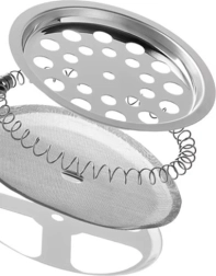 Metalinis sietelis su spyruokle patikimai sulaiko tirščius ir arbatos lapelius, užtikrindamas švarų, sodrų ir subalansuotą gėrimą.