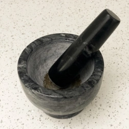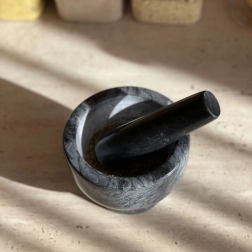 Marmuras neįgeria drėgmės ir kvapų, todėl skoniai nesimaišo, o rezultatas visada švarus ir intensyvus. Grūstuvas idealiai tinka prieskoniams ir žolelėms grūsti, pastoms, pestui ruošti, riešutams, cukrui ar sėkloms smulkinti. Pakuotėje rasite ir apsauginę spalvotą dėžutę bei transportinę kartoninę dėžę saugiam gabenimui ir laikymui.