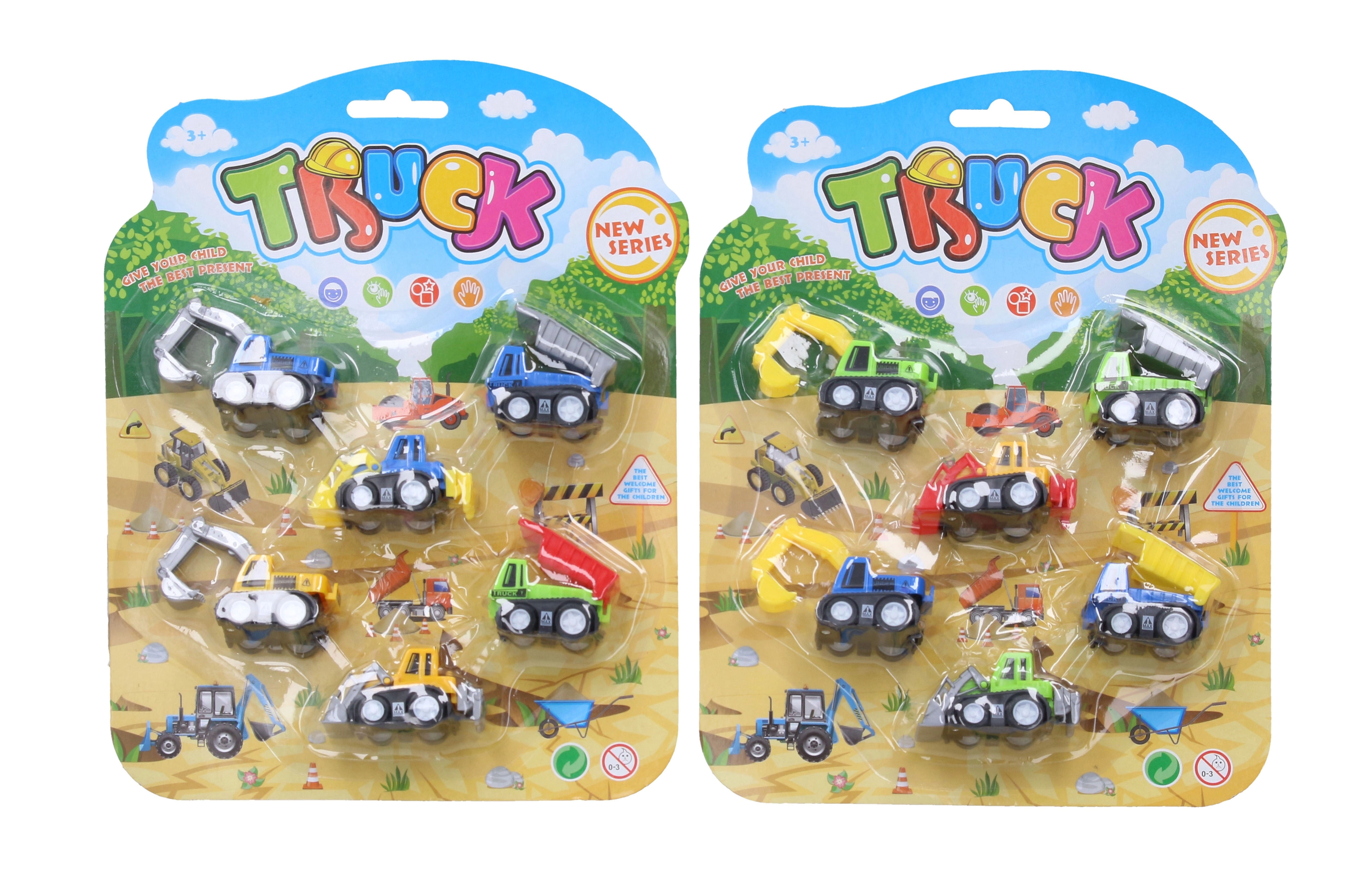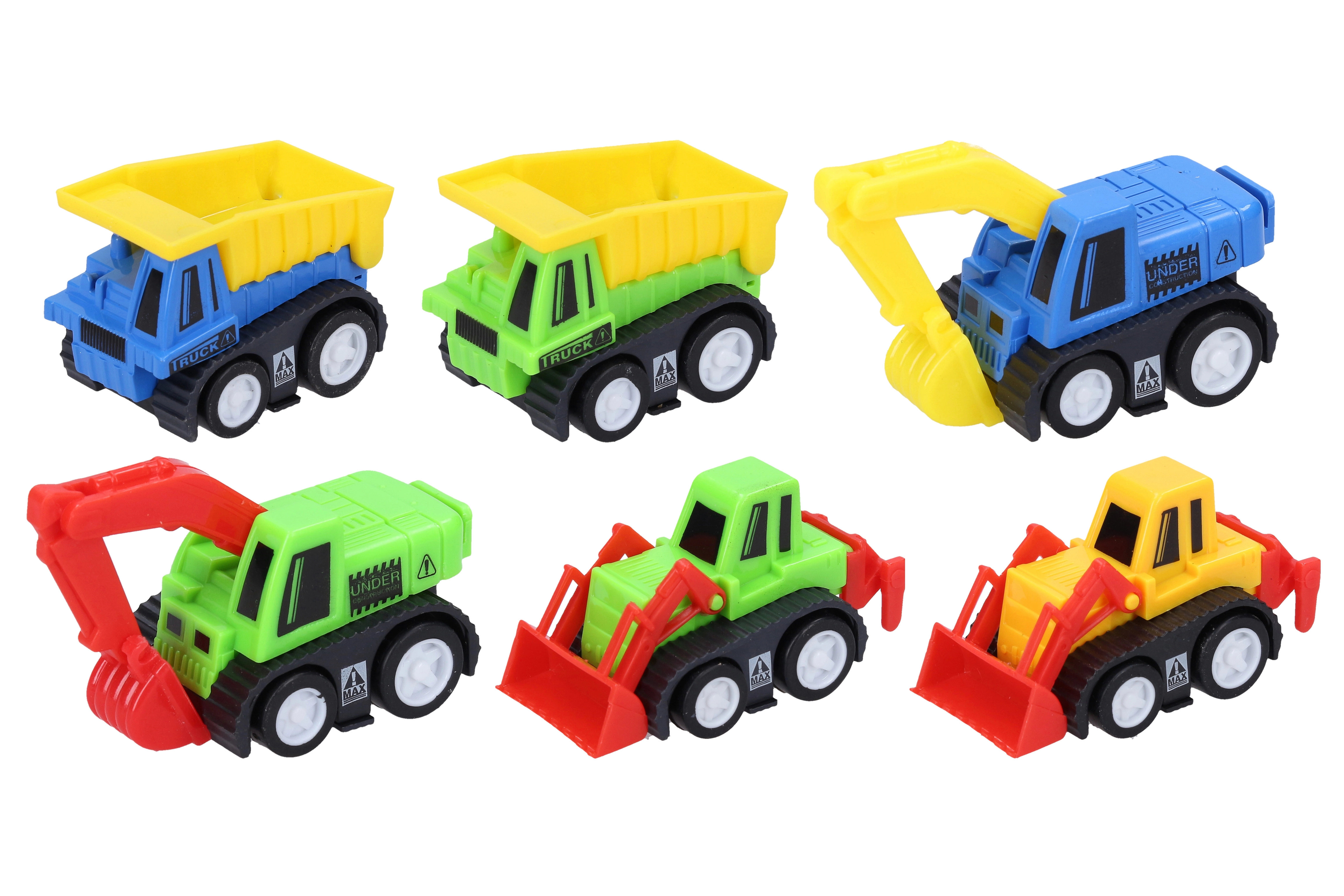Šis spalvingas rinkinys apima 6 statybinius automobiliukus su atgalinio įtempimo mechanizmu, užtikrinančiu greitą ir smagų važiavimą. Idealu žaisti namuose ir kelionėse – mažas dydis ir lengva plastikinė konstrukcija palengvina nešiojimą ir saugų žaidimą.