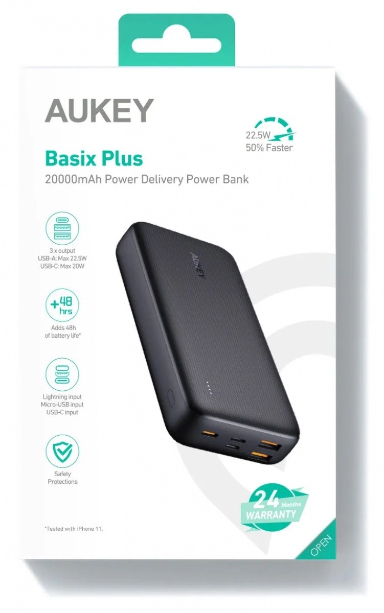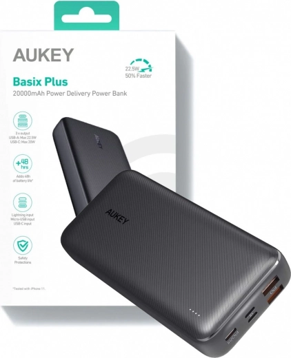 Aukey išorinė baterija – idealus palydovas keliautojams ar tiems, kurie daug laiko praleidžia toliau nuo elektros lizdų. Dėl 20 000 mAh talpos ji gali kelis kartus įkrauti jūsų iPhone ar kitus įrenginius. Kad ir kur vyktumėte, energijos visada užteks.