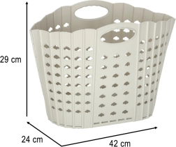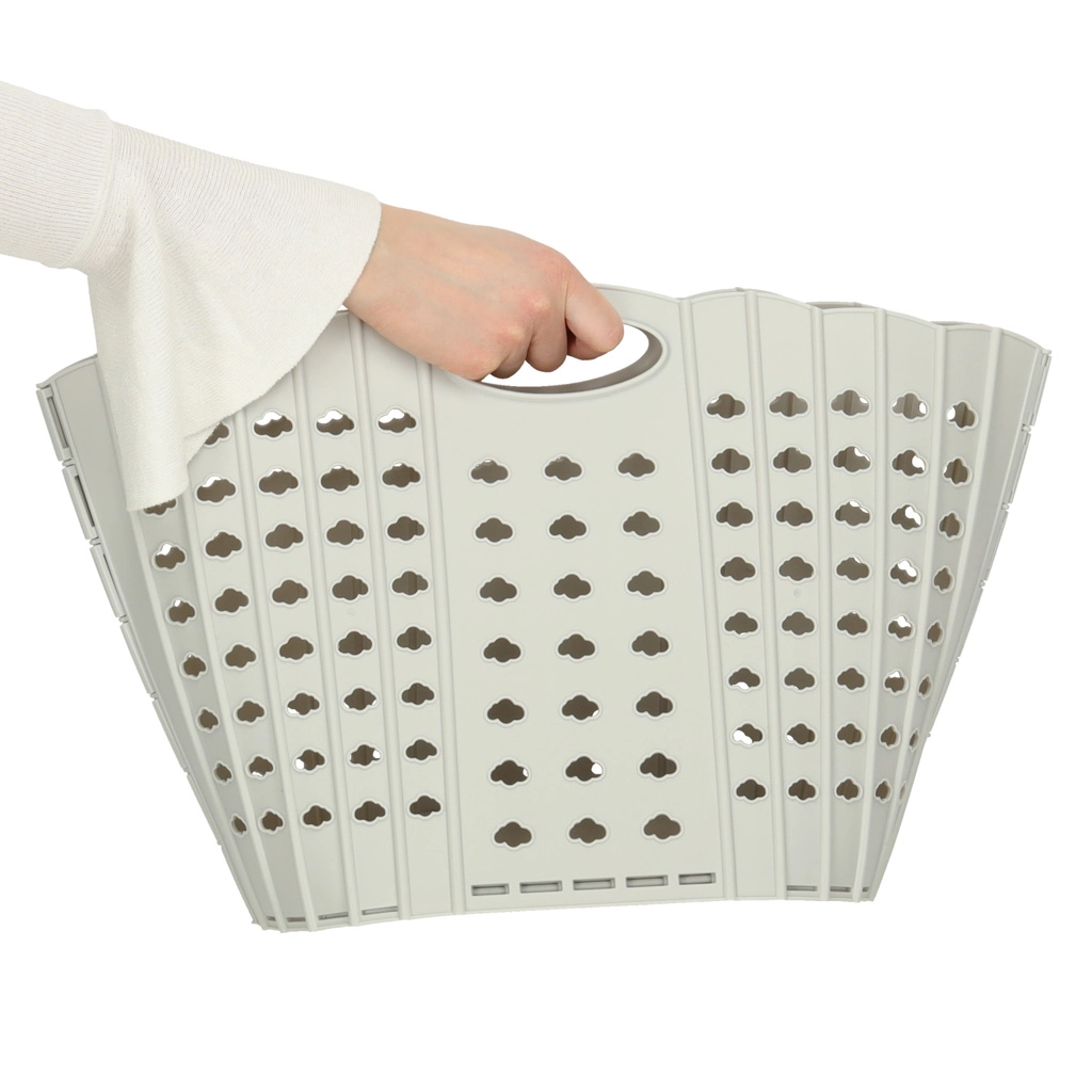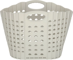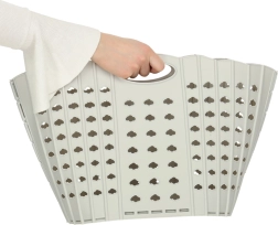 Praktiška sulankstoma skalbinių dėžė pilkos spalvos taupo vietą ir padeda lengviau palaikyti tvarką namuose. Dėl integruotų rankenų ją patogu nešioti, perforuotas dizainas užtikrina ventiliaciją, o patvarus plastikas puikiai atlaiko kasdienį naudojimą. Sulankstoma konstrukcija, patogus suėmimas ir erdvus tūris daro šią dėžę idealiu pasirinkimu vonios kambariui, miegamajam ar skalbyklai.