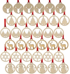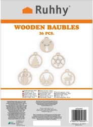 Rinkinyje yra 36 medinės dekoracijos, kaspinėliai ir virvelės, kurios palengvina kabinimą ir suteikia jūsų puošybai tradicinės elegancijos.