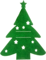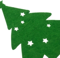 Stilingas kalėdinių stalo įrankių dėklų rinkinys iš tvirto veltinio kiekvieną serviravimą paverčia gražiai suderintu šventiniu stalu. Ryškiai žalia spalva su eglutės formos žvaigždučių iškirpimais atrodo ir elegantiškai, ir žaismingai, todėl tinka tiek šeimos vakarienėms, tiek iškilmingoms vaišėms.