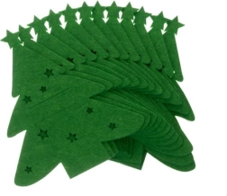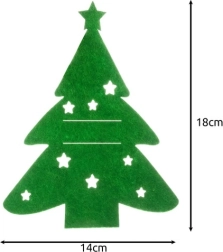 Suteikite šventiniam stalui žavesio su praktiškais eglutės formos stalo įrankių dėklais. Rinkinyje yra 12 vienetų iš kokybiško, tvirto veltinio ryškiai žalios spalvos. Dėl atsparios medžiagos išlaiko formą, nesilamdo ir spalva neblunka net dažnai naudojant. Universalus dydis lengvai talpina šakutę, peilį ir šaukštą ir puikiai papildo bet kokį kalėdinį stalo serviravimą.